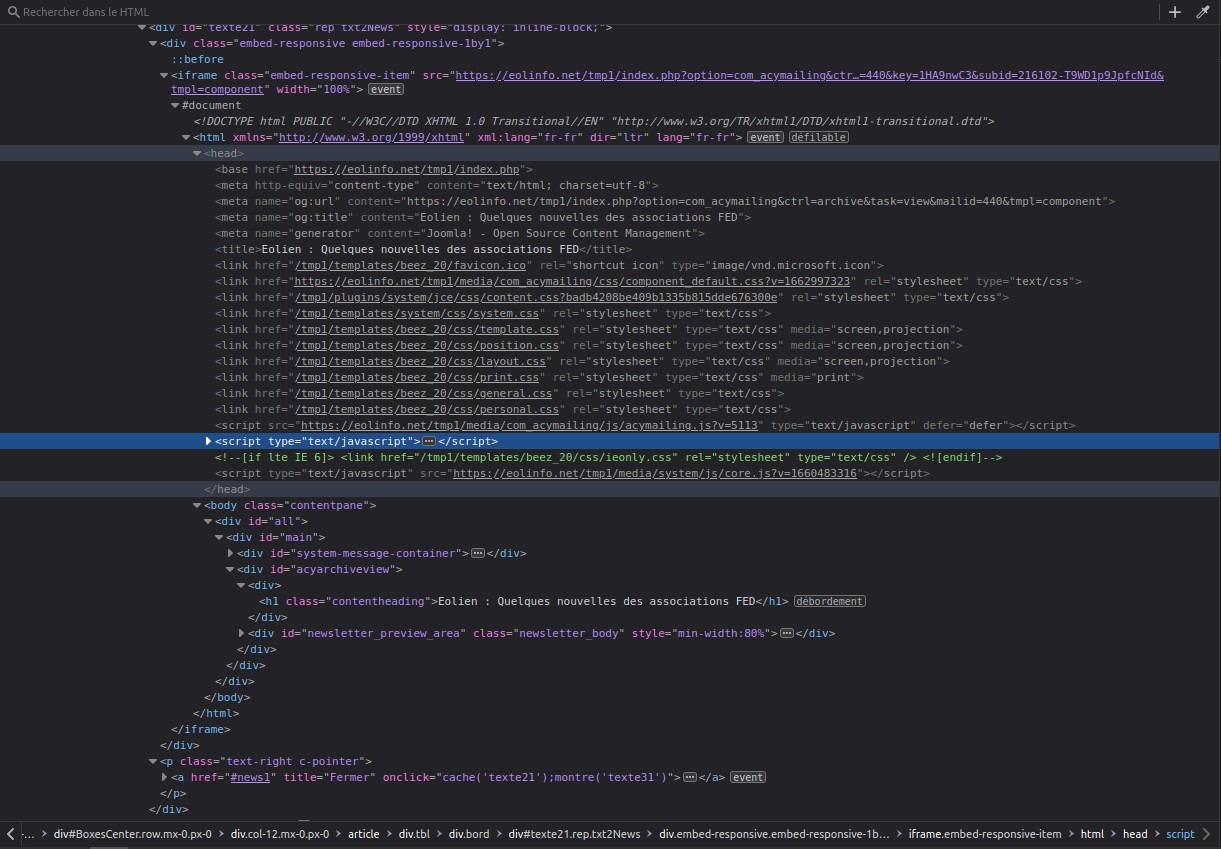 Cela fonctionne bien mais lorsque je clique sur "Actualités" et que je clique sur "Lire la suite", l'iframe se réduit en largeur :